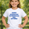 Puhtaan valkoinen, lyhythihainen ja edessä musta teksti – tämä paita julistaa äänekkäästi ja hauskasti, että paikalle saapui bileiden päällikkö.