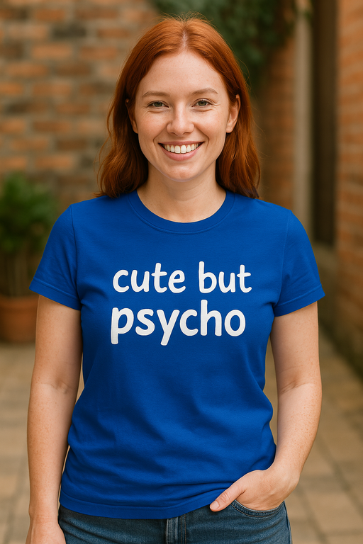 😜 Suloinen? Totta kai. Vähän hullu? Vain silloin tällöin. Siksi käytät cute but psycho – anna paidan puhua ennen kuin ehdit itse!