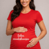 Tyylikäs musta äitiys-t-paita korostaa kauniisti baby bumpia ja tekee odotusajasta näkyvästi juhlan arvoisen – selkeä valkoinen teksti tulen helmikuussa kertoo kaiken yhdellä vilkaisulla.